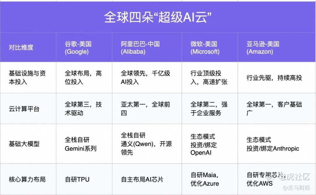 全球范围内,能做到AI时代“水电煤”一般存在的公司屈指可数,目前只有亚马逊、微软、谷歌、阿里能忝列其中。