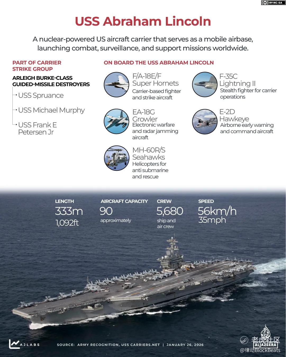 几小时前,特朗普和伊朗方开始频繁放狠话。而社群中又流传出,部署在中东的美国「林肯」号航空母舰及其打击群已进入「全舰熄灯」中断通讯状态的消息,有这表明针对伊朗的行动可能即将展开。