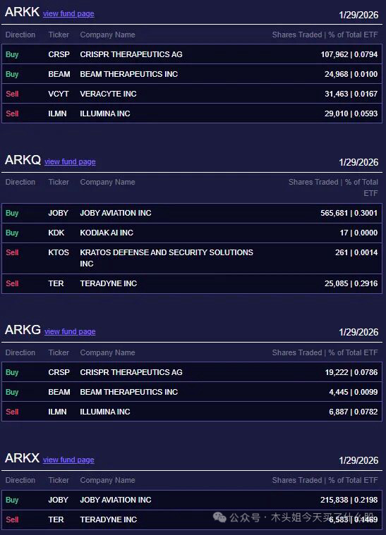 木头姐今天买入680万美元CRSP、90万美元BEAM、900万美元JOBY。