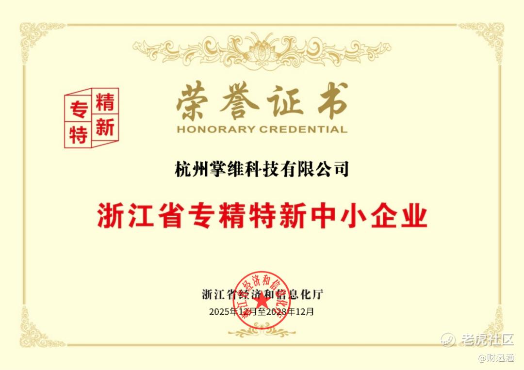 近日,浙江省经济和信息化厅开展了2025年第二批专精特新中小企业认定和复核工作,思美传媒(002712.SZ)旗下杭州掌维科技有限公司(以下简称“掌维科技”)依托在AI技术与产业应用融合上的突破性成果,通过严格评审,成功获评“浙江省专精特新中小企业”认定。