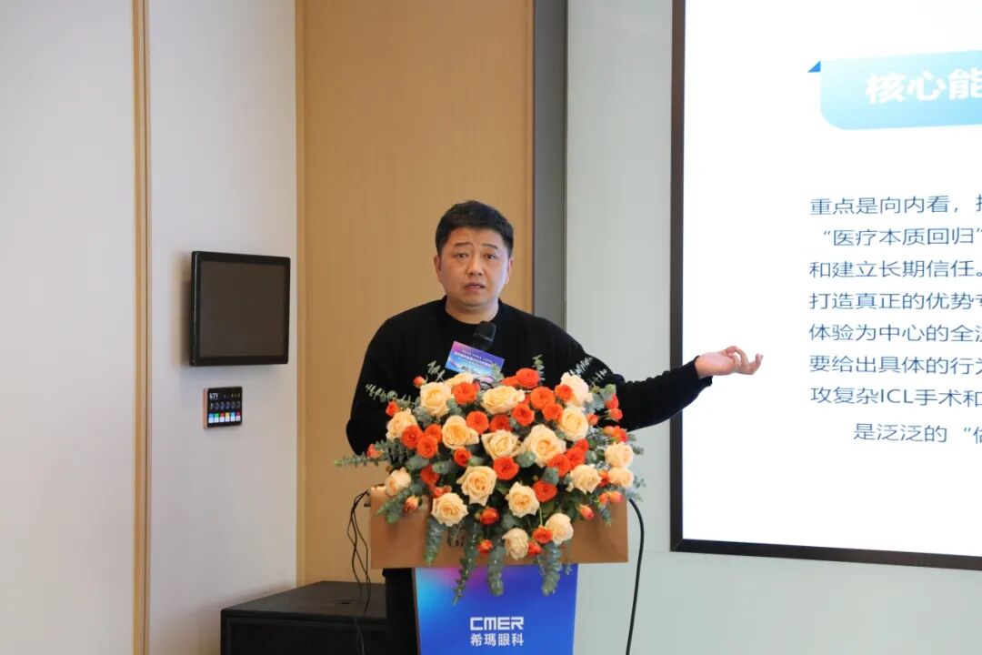 1月30日的会议聚焦于学科建设与干部领导力提升。首先,深圳希玛医疗院长詹行楷作为学科建设先进代表,分享了深圳希玛眼科医院在团队建设方面的实践经验,围绕“引才、育才、留才”三大核心策略,展示医生团队结构、专科优势与发展路径。为集团内其他分院提供了可复制、可落地的学科建设范式。