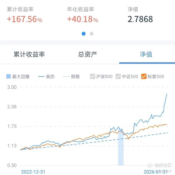 2026 年内标普 500 指数 上涨 1.37%,2026 年内我的实盘净值 上涨 26.76%(年初净值为2.20,本周净值2.79)。