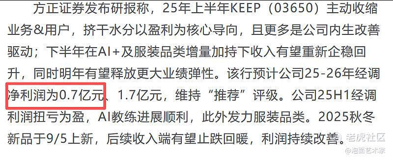 财报季真空期,等报告吧,之前方正预测Keep25年的经调净利润0.7亿元,不知道会不会有惊喜,能破个亿啥的。
