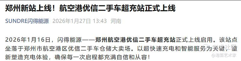 2026年1月16日,闪得能源在郑州航空港优信二手车超充站正式上线启用,本事对于优信的利好(AI总结):