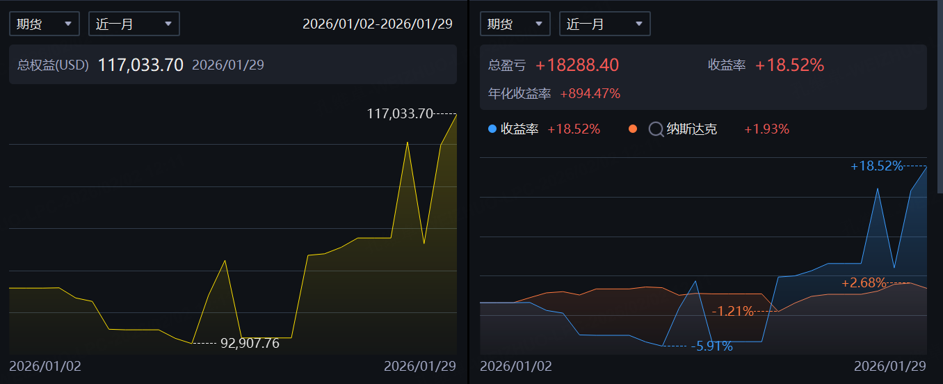 嗯,1月份的收益还可以,主要是金银走势太给力了,很按我的剧本来走: