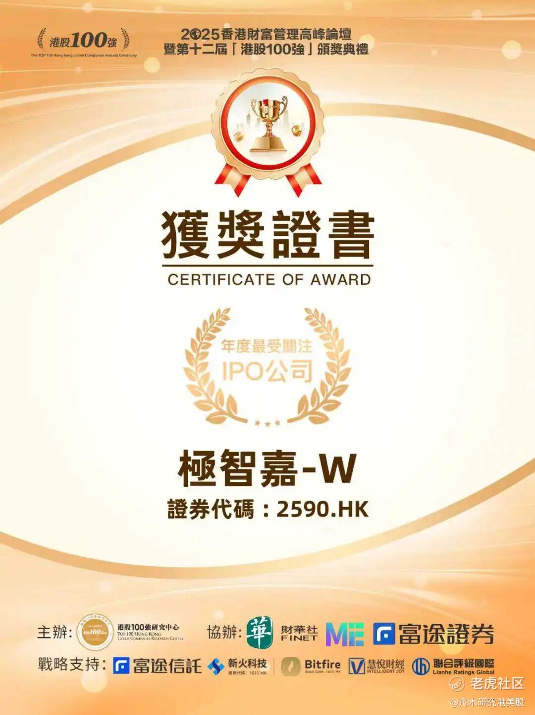 2026年1月9日,极智嘉荣获“港股100强”年度最受关注IPO公司奖项,是榜单上唯一的智能机器人公司。该奖项由港股100强研究中心主办,财华社、ME、富途证券联合协办。