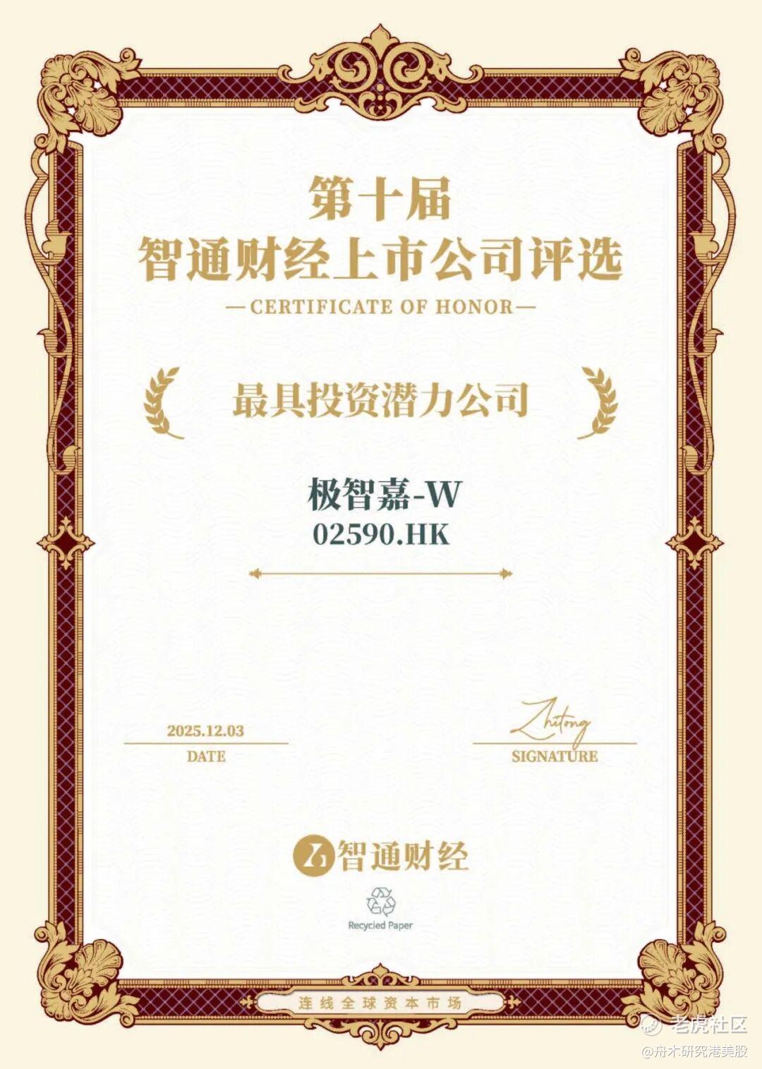 2025年12月3日-5日,在第十届智通财经上市公司颁奖盛典上,极智嘉凭借其清晰的商业模式、广阔的成长前景、领先的盈利增速及突出的估值吸引力,成功斩获“最具投资潜力公司”奖。