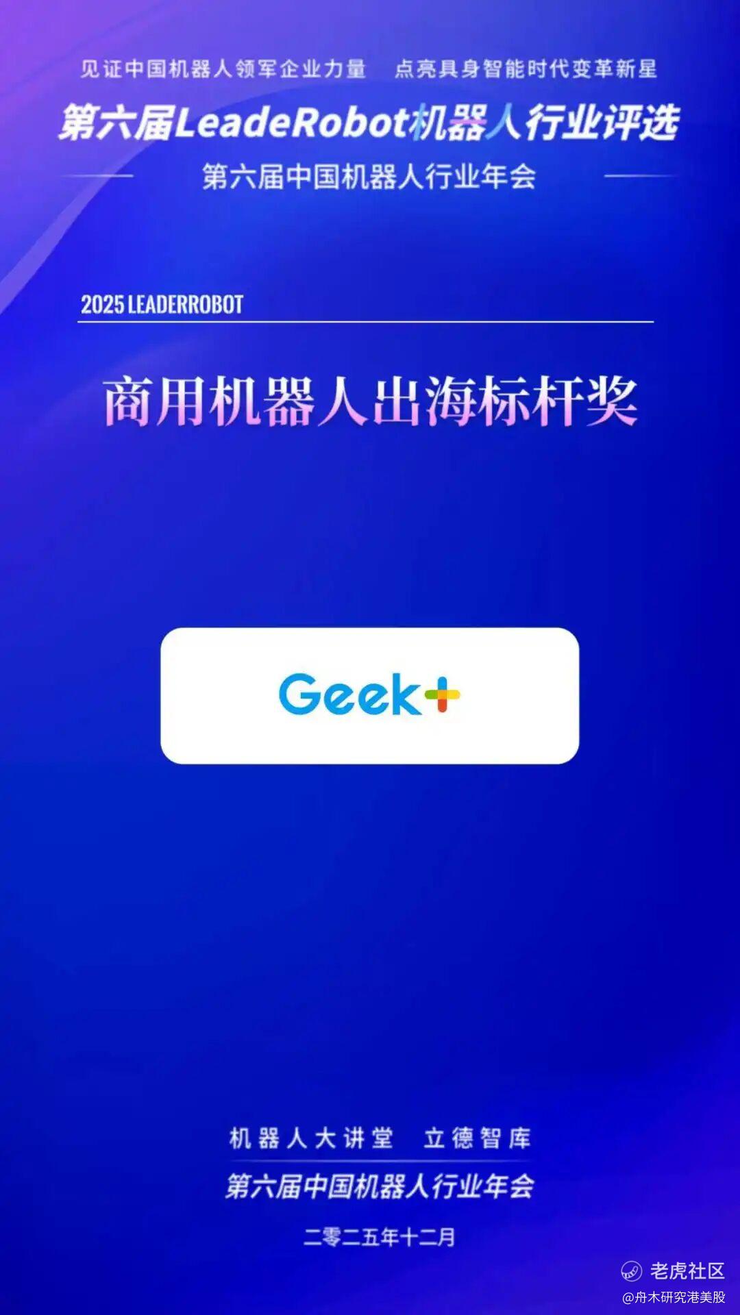 近期,全球智能机器人引领者极智嘉 (Geek+ , 股票代码:2590.HK)在资本市场与产业界横扫跨领域七大重磅奖项,不仅接连揽获“港股100强-年度最受关注IPO公司”、“年度卓越投资价值IPO”、“最具投资潜力公司”、“港股价值成长奖”四大资本市场权威奖项,更凭借机器人产业影响力,斩获“年度商用机器人出海标杆奖”,并强势上榜“2025年度中国机器人领军企业榜TOP50”以及“新质100创新企业榜”。