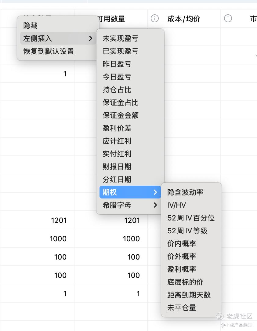在表头区域右键,支持插入支持更多字段