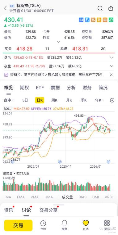 客观而言,这份财报远没有部分悲观者预期的那么糟糕,诸多关键指标已然企稳回升,展现出传统汽车业务在价格战白热化背景下的经营韧性;而更重要的是,管理层对未来业务的展望,无论是自动驾驶出租车RoboTaxi的部署节奏、人形机器人Optimus的商业化路径,还是新一代AI芯片的迭代时间表——基本符合甚至局部超出了市场的risk-on预期。这或许解释了为何在财报发布后,特斯拉股价在盘后交易中一度温和上涨,即便马斯克随后抛出的"2026年200亿美元资本开支"重磅炸弹引发了部分投资者对现金流压力的担忧,导致涨幅收窄,但市场对特斯拉长期价值的信仰并未动摇。