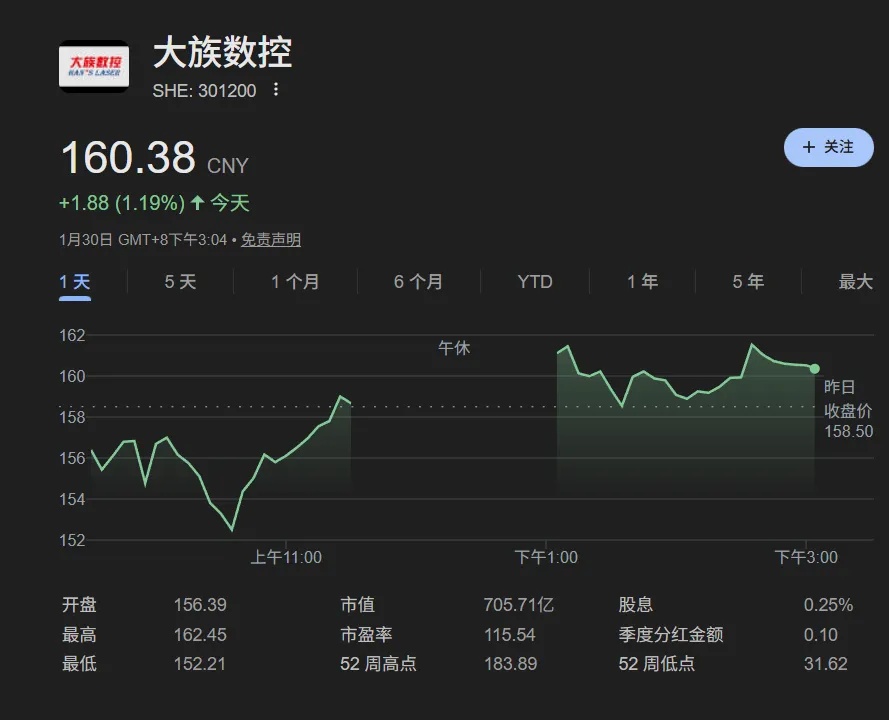不过高估值在这行算是常态。同样做PCB设备的公司,比如东威科技、芯碁微装在A股都曾出现高估值,而像大族激光这类平台型母公司估值一般更温和。所以纯看估值数字,意义不大,关键是要看市场对估值是否认可。