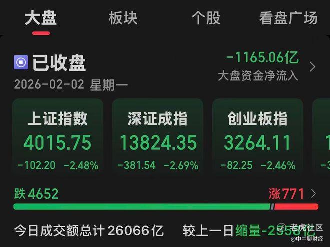 $上证指数(000001.SH)$ 今天好惨啊!绿油油的一片,全市场逾4600只个股下跌,百股跌停,看来真应了那句话,雪崩的那天,没有一片雪花是无辜的。究其原因,有内外因素都有,外部大宗商品价格波动引发资源股抛售,内部科技板块估值回调叠加节前效应,共同导致市场风险偏好快速回落。下面,我们来看一下,今天的盘面走势: