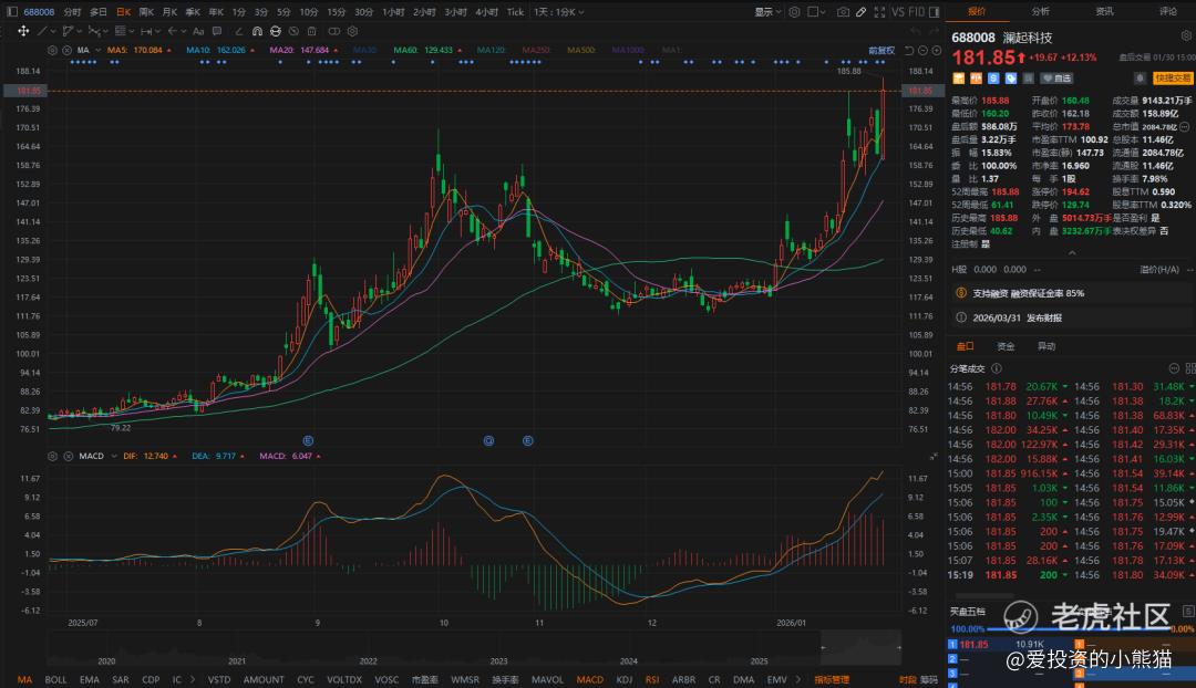 这一溢价率处于科技类AH股的较高区间,但符合A股对硬科技标的的流动性溢价特征。对比同行业中芯国际、寒武纪等公司的AH溢价(通常在50%-120%区间),澜起科技的溢价水平与行业规律相符,反映A股市场对其稀缺性和成长性的定价认可。