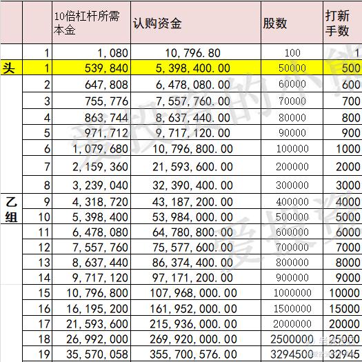 乙头需要认购资金540万,乙组的各档融资所需要的本金还有融资金额对应如下表: