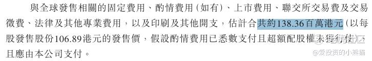 然后这个票招股书上按发售价106.89港元计算,公开的上市所有开支总额约为1.38亿 港元,募资额约70.43亿港元,占比约1.96%,开支相比募资额算是特别少了。