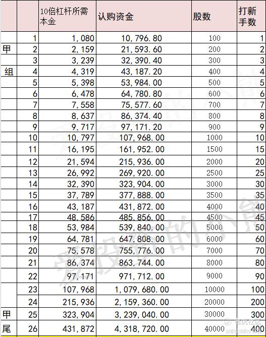 甲组的各档融资所需要的本金还有融资金额对应如下表: