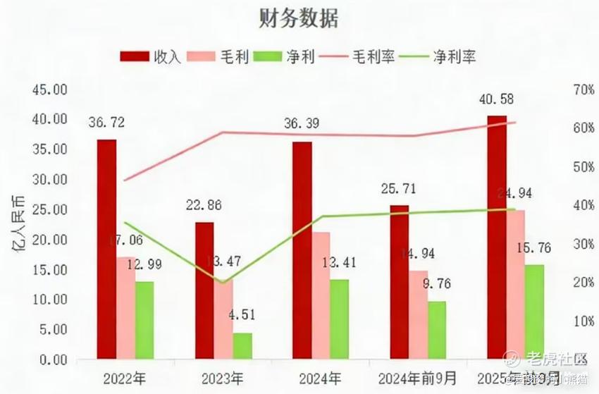 公司过去两年业绩呈现显著复苏增长态势,2023年实现营业收入22.86亿元、毛利13.47亿元、净利润4.51亿元;2024年营业收入增至36.39亿元,毛利提升至21.15亿元,净利润大幅增长至13.41亿元,盈利能力显著增强。