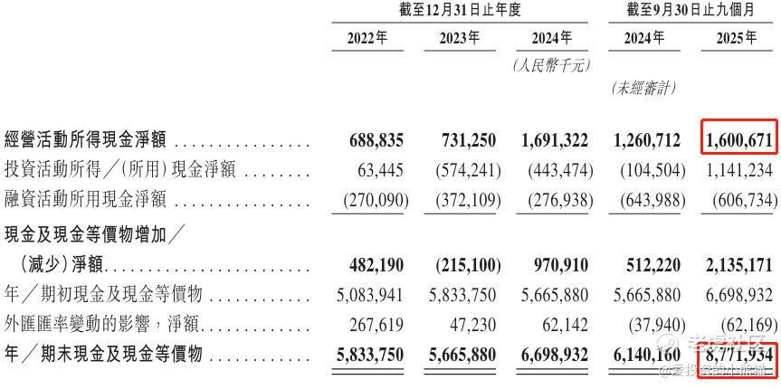 净利分别约为人民币12.99亿元、4.51亿元、13.41亿元、9.76亿元、15.76亿元,2025年前9月同比+61.45%;