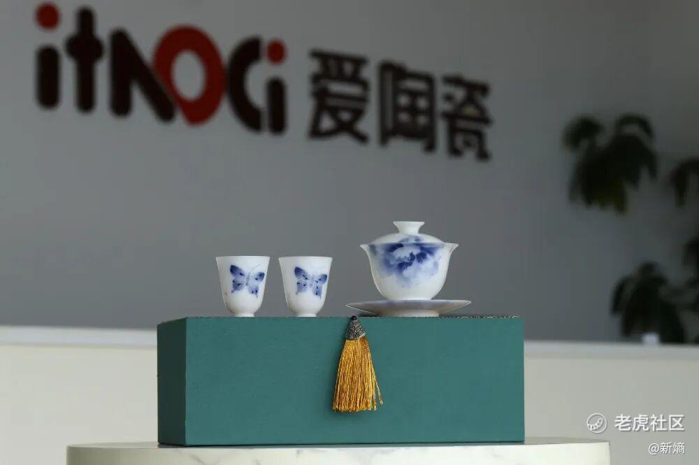图说:此次参与直播的高端系列白瓷茶器,来自“爱陶瓷”的⼤师⼿绘⻘花系列。