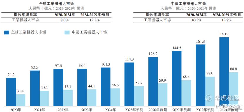 未来,在智能制造持续深化、持续的劳动力成本压力、更多行业加速自动化升级之下,工业机器人市场有望持续增长。预计到2029年,全球及中国工业机器人出货价值分别达到约1809亿元、888亿元,预计2024年至2029年的复合年增长率分别约12.3%、13.8%。