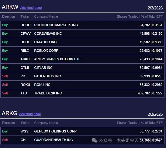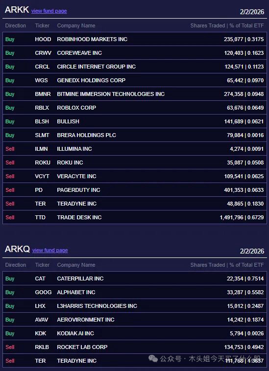 今天买入3200万美元HOOD、1500万美元CAT、1500万美元CRWV、1300万美元谷歌、1000万美元WGS、950万美元CRCL、640万美元BMNR、630万美元RBLX、620万美元BLSH、540万美元AVAV、500万美元LHX、470万美元SHOP、410万美元HEI、400万美元ARKB、320万美元LMT。