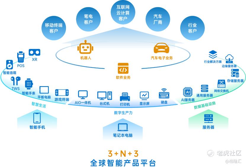 系统集成能力使华勤的延展性极强,这个优势在服务器和汽车电子等复杂领域更为重要。根据公开资料,公司践行的“3+N+3”战略以智能手机、笔记本电脑、服务器为三大基座,拓展N种生态产品,如智能生活、商业数字生产力等,并布局汽车电子、软件、机器人三大创新方向。而AI带来的增量,正沿着从B端到C端、从算力基础设施到智能终端的路径,在华勤的“3+N+3”业务版图上逐层兑现。
