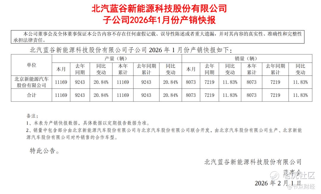 北汽新能源1月份销量8073辆、同比增长11.83%,尽管没能延续2025年12月超114%的环比增长表现,考虑到北汽新能源以及北汽集团目前整体向上的势能,对北汽新能源接下来的表现依旧给予乐观预期。
