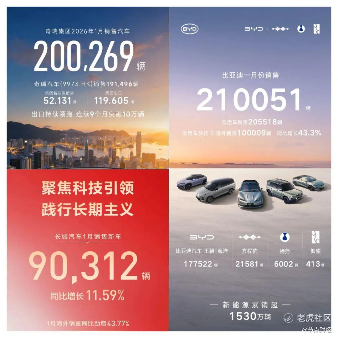 在自主汽车集团方面,吉利反超比亚迪成为1月集团销量头名,奇瑞正在缩小与比亚迪的差距,而海外市场将成为他们2026年谋求增长的核心引擎。