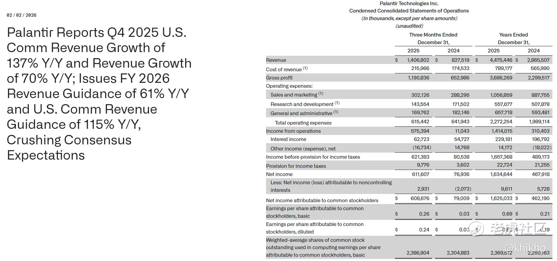 很多公司 Q4 好看,但指引一给就露馅。Palantir 反过来:指引比 Q4 还“嚣张”。