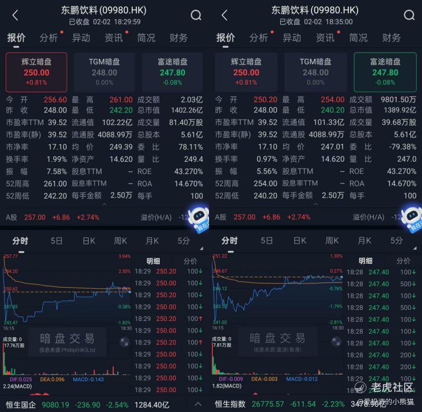 再看看东鹏饮料(09980.HK)暗盘情况