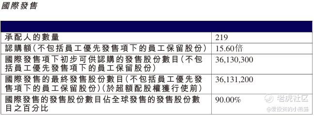 东鹏饮料(09980.HK)国际配售总共219人,认购额15.60倍。