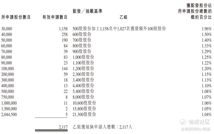东鹏饮料(09980.HK)乙组官方披露的中签名单: