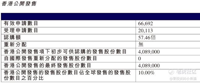 配售情况:66692人认购,这次公配57.46倍,由于机制B分配,无回拨比率,国配有15.60倍,一手中签率15.00%,公开认购60手稳中1手,同时乙组2117人申购,其中顶头槌申购5张,获配率1.04%-1.96%。
