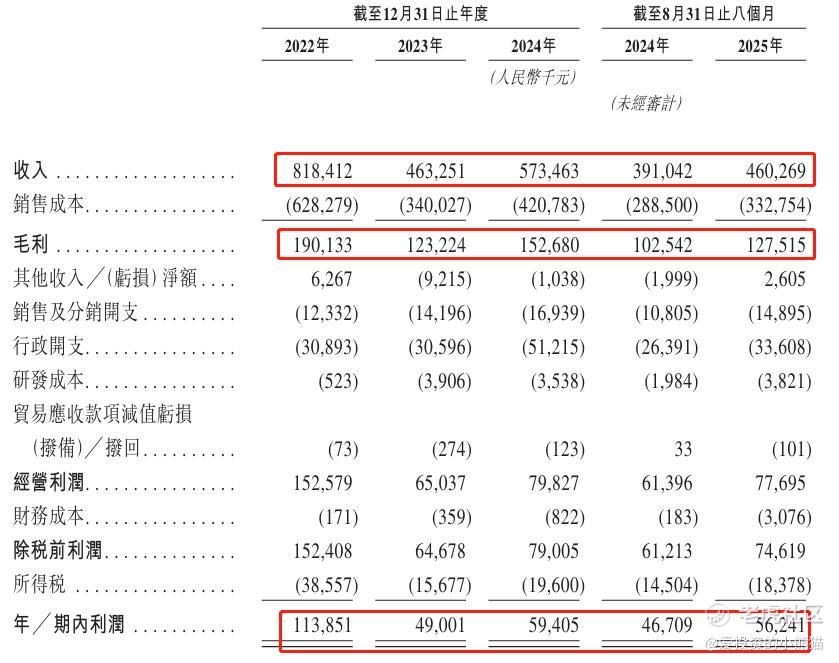 截至2024年12月31日止3个年度、2024及2025年前八个月: