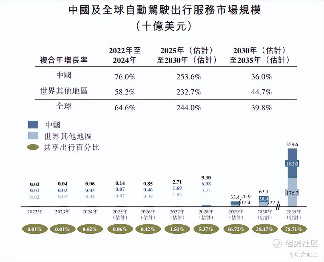 弗若斯特沙利文预测,无人驾驶车辆渗透率将由2025年的0.06%大增至2026年的0.42%,到2030年无人驾驶车渗透率有望大增至28.47%。规模方面,全球无人驾驶出行服务将从2025年的1.4亿美元增至今年的8.5亿美元,2030年这一规模将升至673亿美元,期间年化复合增速高达199%!