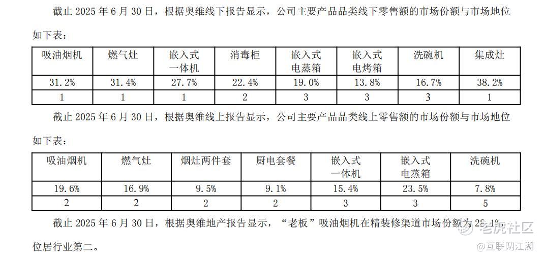 其实,如果单看财报里的主要产品市场份额排名,很多人都想不到老板电器和方太的差距会这么大。