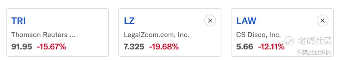 汤森路透(TRI): 作为全球法律信息巨头,其赖以生存的数据库检索和专业分析业务在原生AI面前显得沉重且昂贵,股.票盘中一度崩跌21%。 $汤森路透(TRI)$
