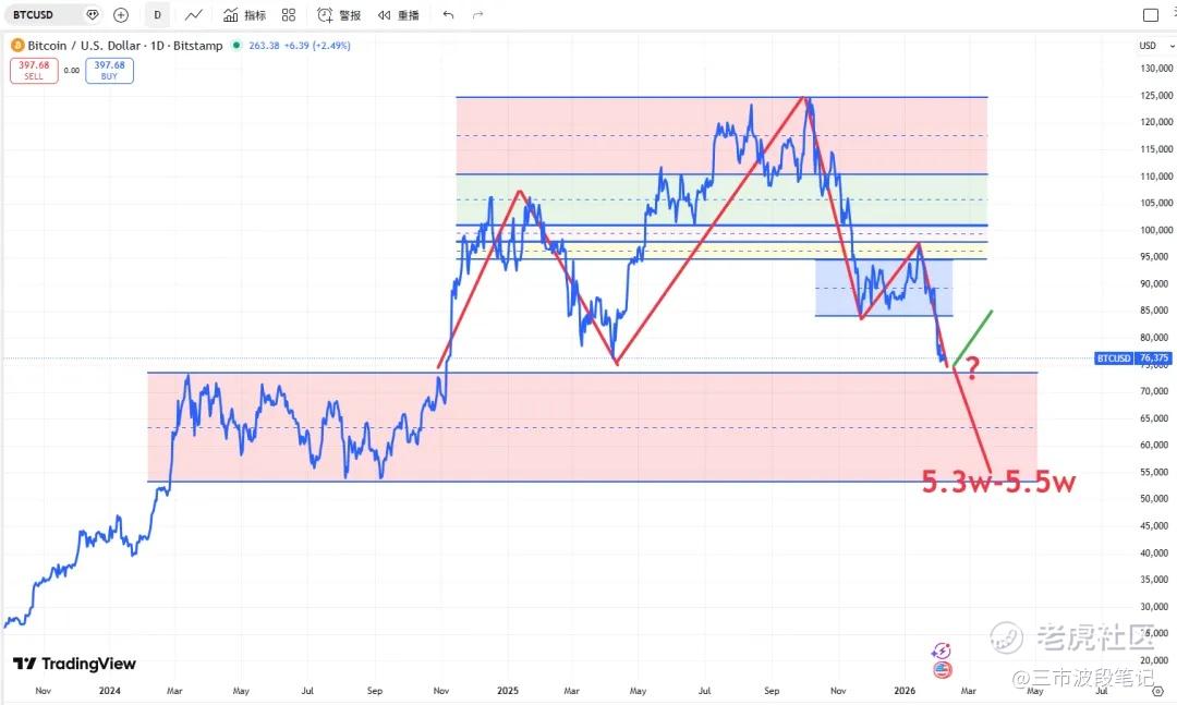 突破7W的支撑位后,就进入到了5.3W-5.5W的通道区间。预估一下,这个过程BTC最大可能回调30%左右。
