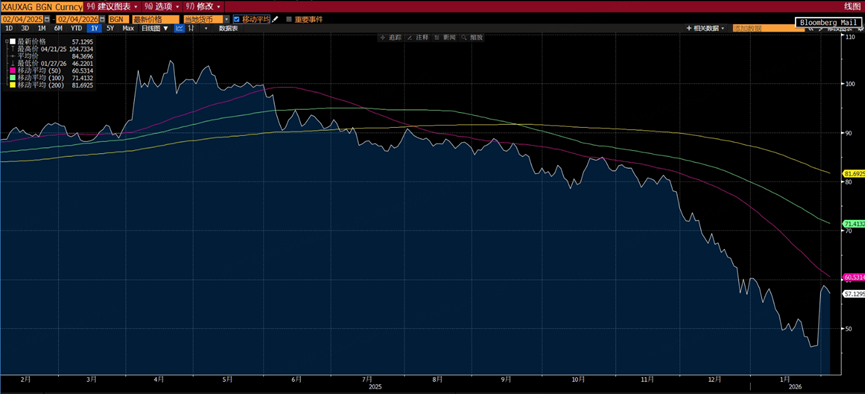 金银比跌破长期均值后迅速回升,说明白银此前的超额涨幅正在被市场重新定价。简而言之,这一次金银比的回升,是结构性修复白银的超预期增长,而非黄金长期看好趋势反转。