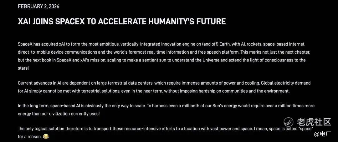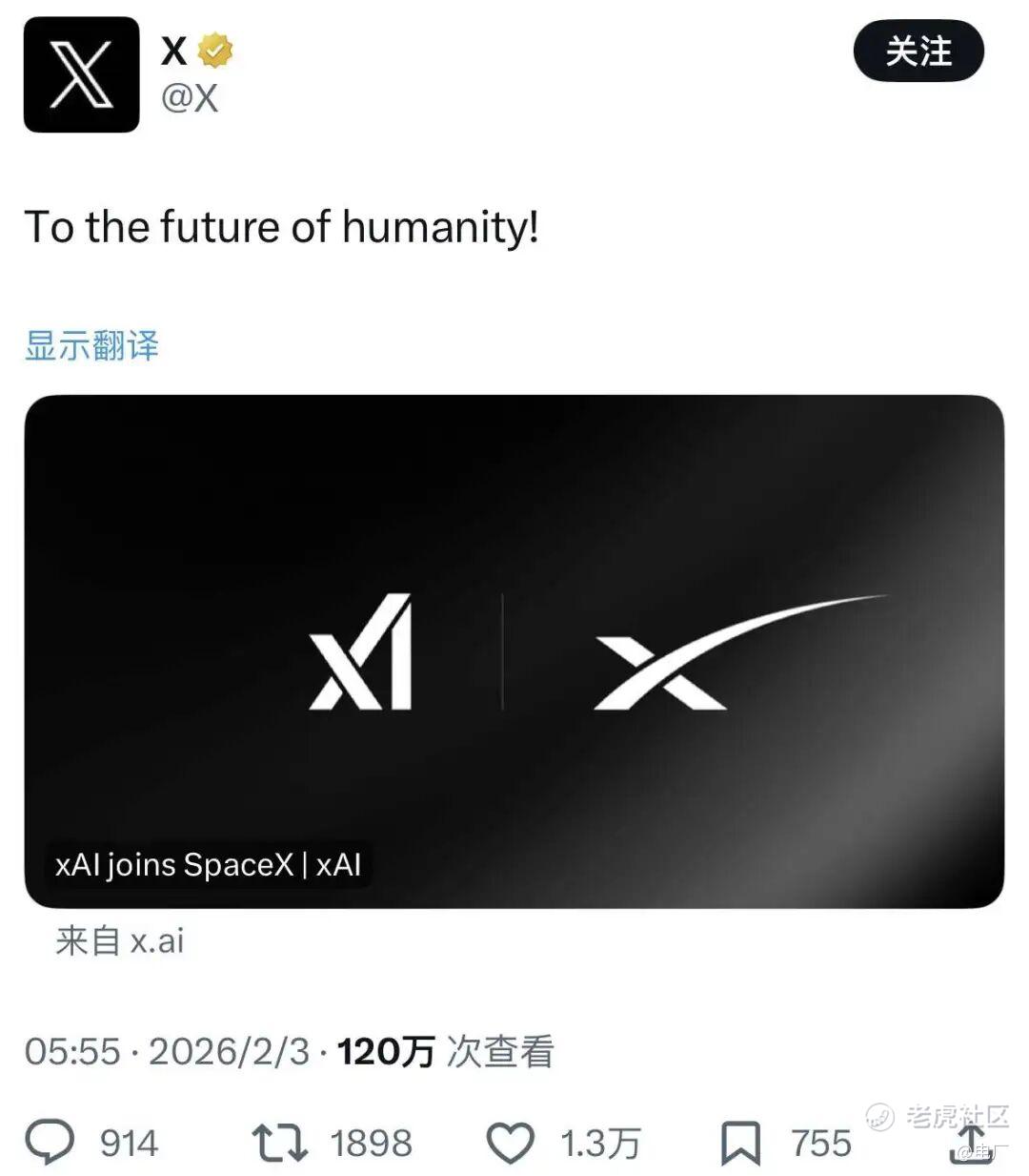 美国时间2月2日,马斯克旗下的人工智能公司xAI与商业航天公司SpaceX完成合并,从有消息传出到正式官宣仅经历3天。