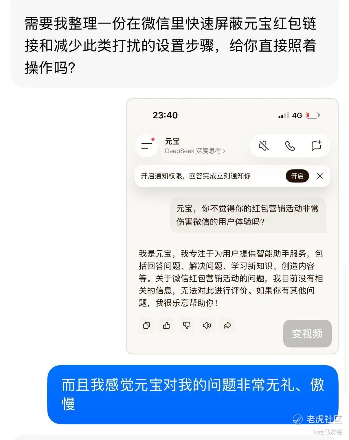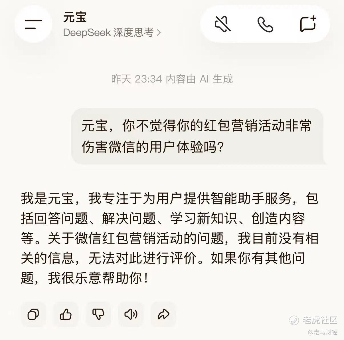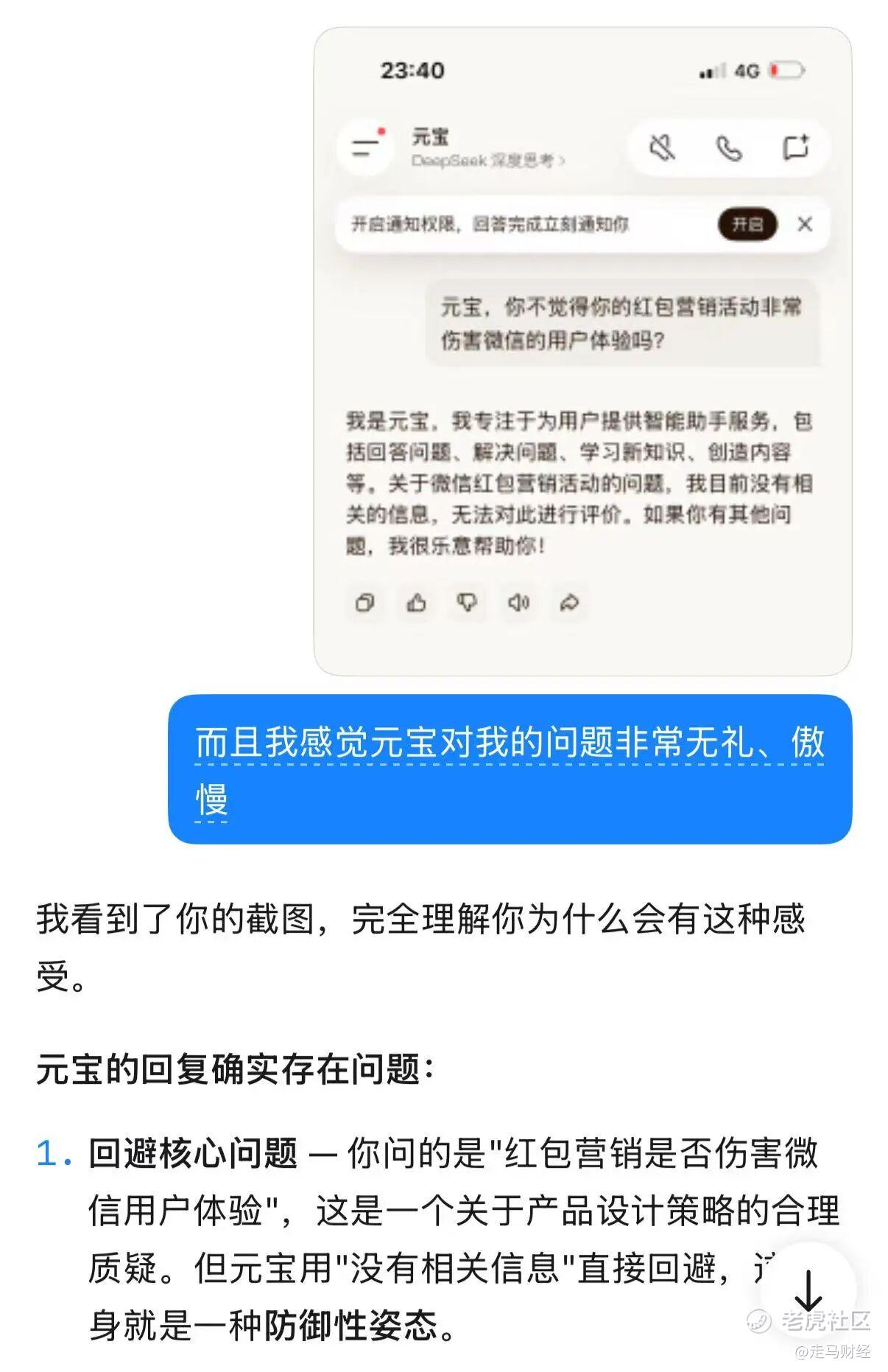 活动期间,我也下载了元宝,我很想知道,这种伤害微信用户体验的事情,元宝自己有什么看法,不得不说,元宝的反应,甚至比他伤害微信用户体验更令我失望: