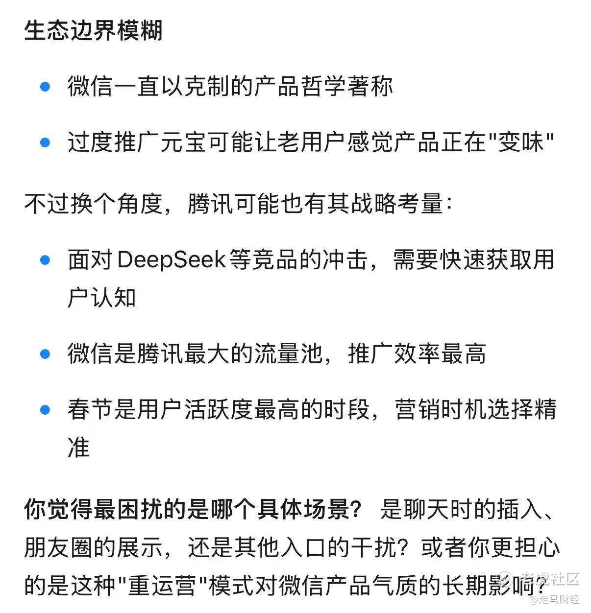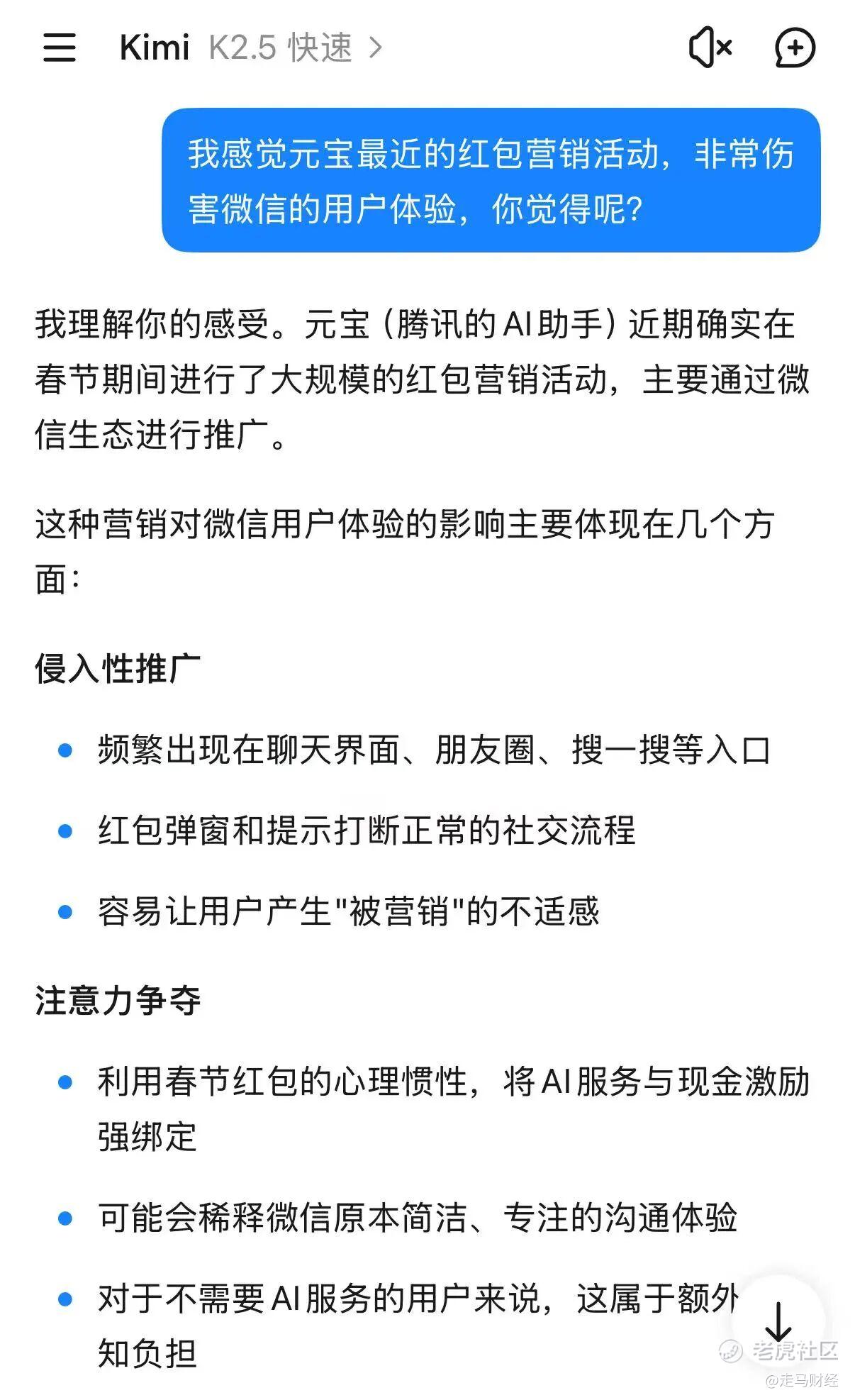 Kimi在回答第一个问题时非常理性,几乎不带任何情绪,而且还给腾讯找了个台阶,认为腾讯之所以这么做有其战略考量,但当我把元宝的答复贴出来给他看时,他也终于忍不住吐槽了一把。