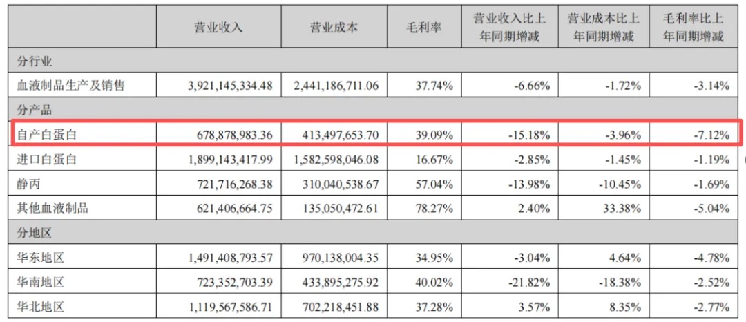 业绩下滑的背后,是公司核心业务盈利能力弱化与运营效率低下。从产品表现看,2025年上半年,其自产白蛋白业务规模虽仅6.79亿元,但毛利率降幅达7.12%,核心业务盈利空间持续被压缩。