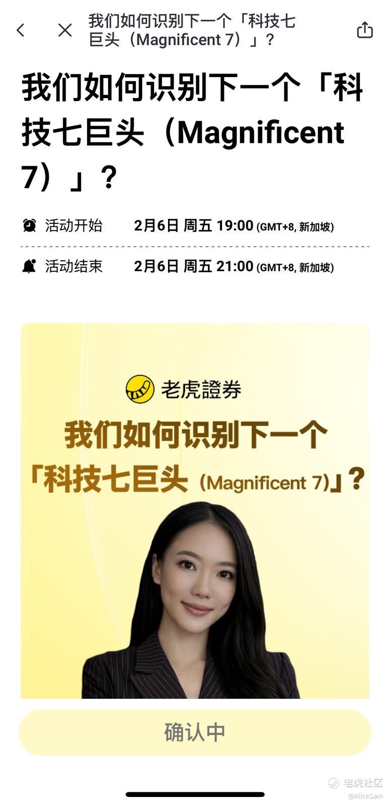 今晚Tiger的讲座,请的是一位美女讲师,看起来就像一个刚毕业的女大学生,我还以为今晚大概只是听一顿照本宣科,不会有什么共鸣呢。[鬼脸] 都被这个照片骗到了吧,她其实是一位拥有量化金融博士学位的AI顾问和商业教练,持有CFP和CFA一级资格,在投资领域有丰富的专业背景,妥妥的人美就算了,还是个学霸,还是个实践派的行动者 ! [惊讶]