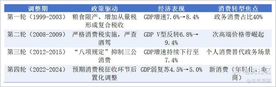 本轮自2022年开启的调整周期已历经4年,整体依旧没有走出复苏通道,时间相较以往较长。不同点在于,当前行业政务型消费占比已经很低,个人消费占据主流,行业调整多与宏观经济增长挑战下消费需求下滑相关。