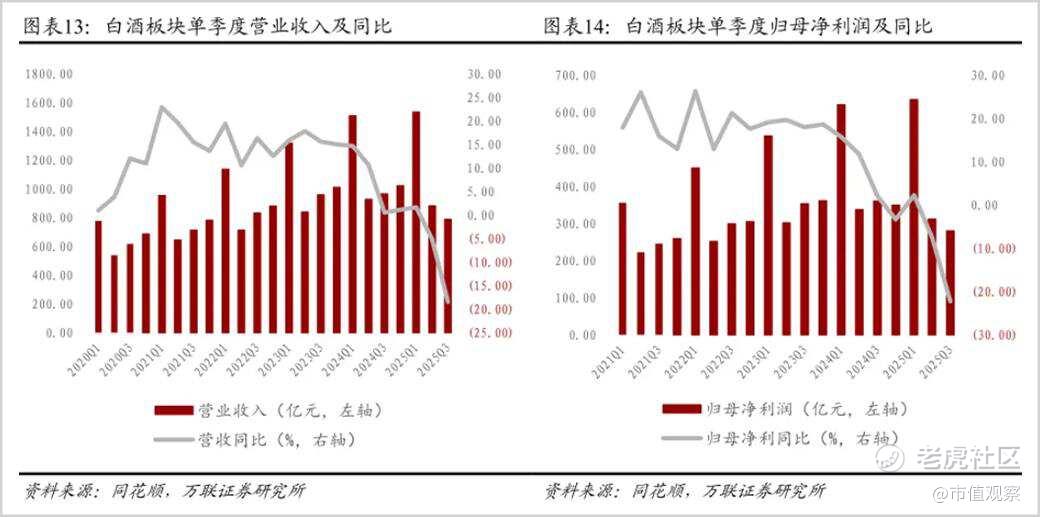 从上市公司的业绩表现也能窥知一二。据万联证券研究,2025年第三季度白酒板块实现归母净利润280.6亿,同比下滑22%,不仅创出了本轮周期内最大单季回撤,也显著超过了上轮2012年至2015年调整期的任何一个季度。