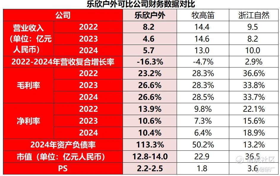 从盈利能力来看,乐欣户外 2022-2024 年毛利率分别为 23.2%、26.6%、26.6%,低于浙江自然(同期 36.6%、33.8%、33.7%),与牧高迪基本持平;净利率层面,乐欣户外 2022-2024 年分别为 13.9%、10.6%、10.4%,显著高于牧高笛(同期 9.8%、7.3%、6.4%),且 2024 年虽略有下滑但仍维持在 10% 以上的稳健水平,核心在于其通过成本优化、原材料价格下跌及产品结构升级(高毛利产品占比提升),实现了盈利质量的稳步提升。资产负债率方面,乐欣户外 2024 年为 113.3%,显著高于牧高笛的 50.2% 与浙江自然的 13.2%,主要源于前期借款及银行贷款的融资结构,后续随着上市融资到位,资产负债率有望进一步改善。