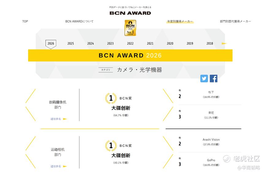 2026年1月19日,日本权威零售数据机构BCN+R将“数码摄相机”和“运动相机”两项年度大奖,授予了大疆Pocket和action系列。