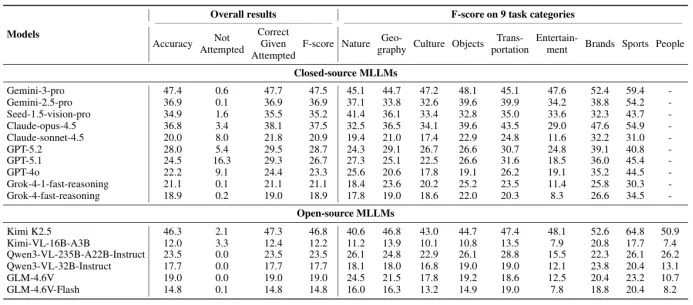 数据清晰地表明,现阶段的多模态模型距离“视觉百科全书”还存在巨大差距。