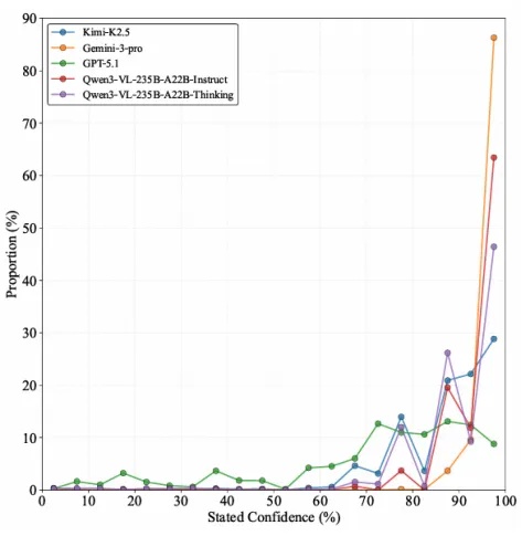 Gemini-3-Pro可谓是一马当先,证明它总是会说自己“非常确定”,即便是它压根没看懂图里到底有什么,也就是缺乏对“不确定性”的表达能力。